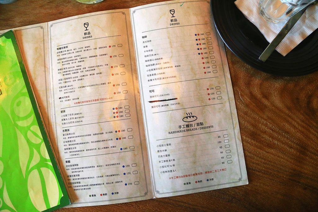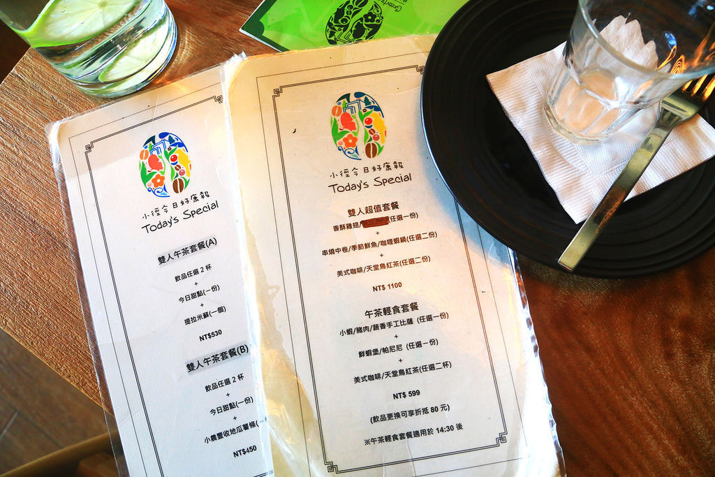 我們點了"雙人午茶套餐(B)"($450,而且這間不用收服務費喔~),包含兩杯任選飲料、今日甜點一份以及一份"小農豐收地瓜薯條"。