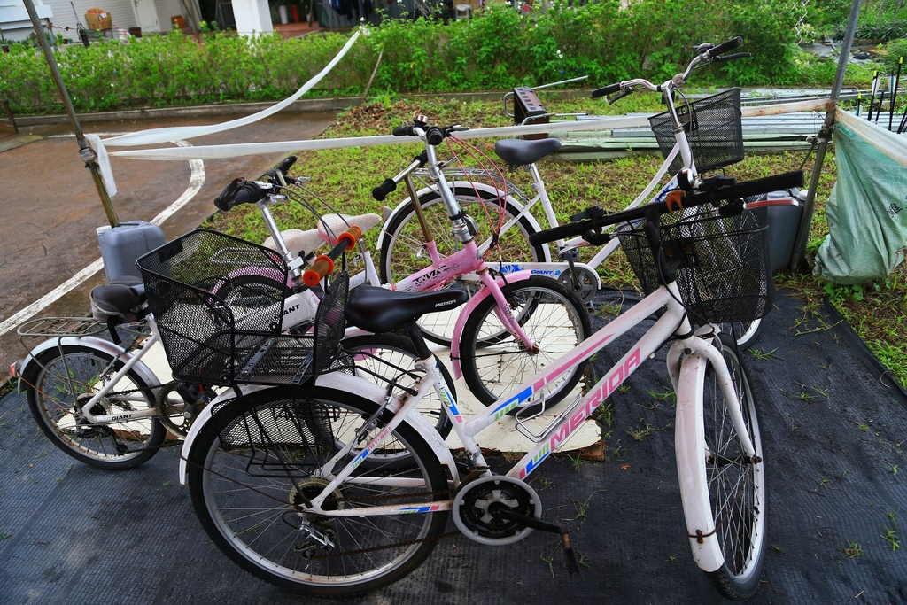 民宿也有提供腳踏車可自行騎乘,其中有一台親子車後方可載大小孩。