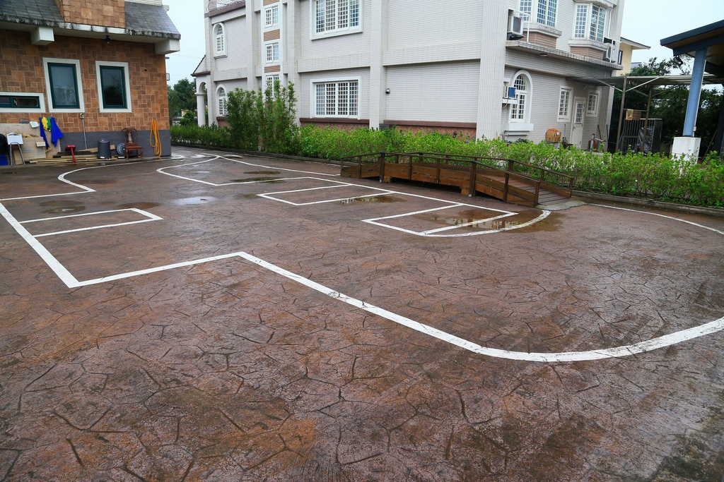 房子後方的停車場則有更寬廣的電動車道給孩子們放電。