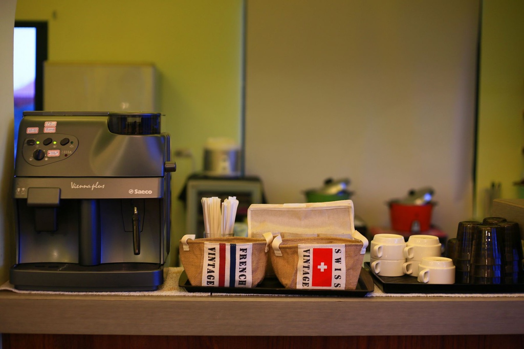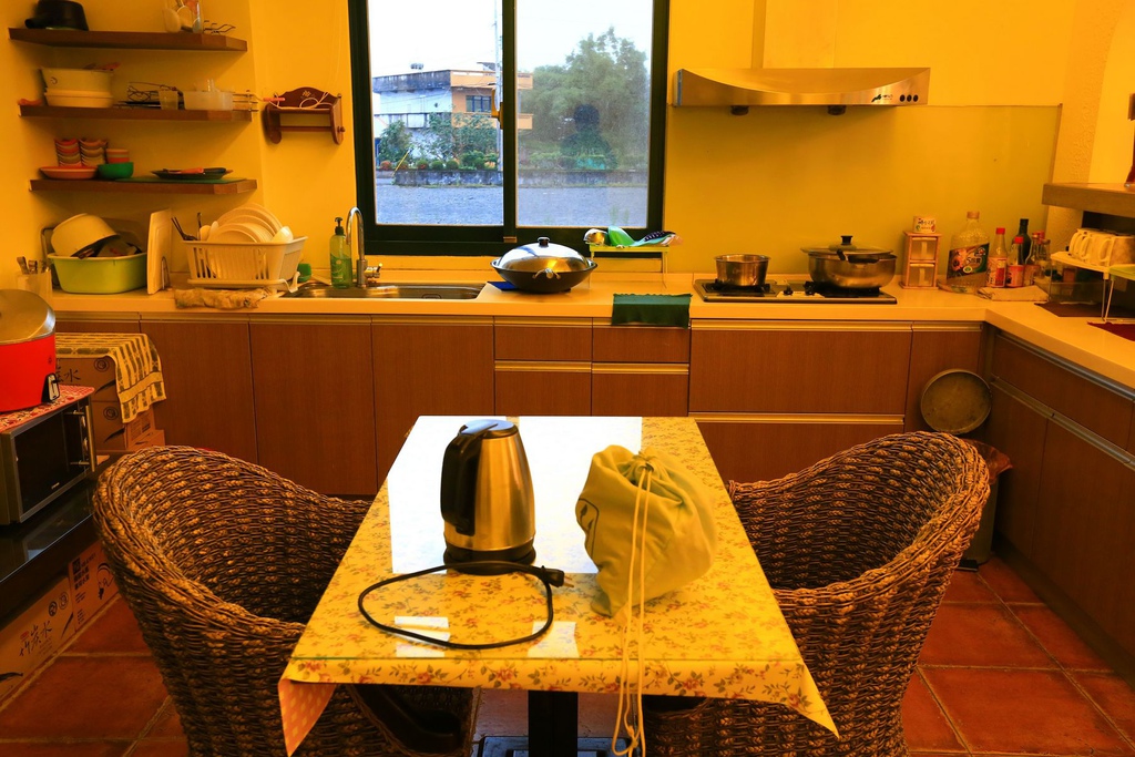 餐廳和廚房間的吧台上設有咖啡機,糖包奶精那些當然也沒少,對我們這次同行、早上必來杯咖啡的友人來說真是個福音。