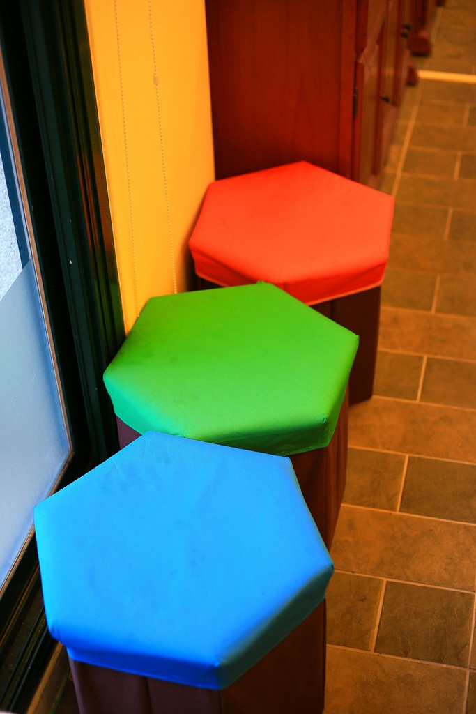 如果椅子不夠(應該不太可能)或是有帶大小孩的,旁邊有色彩繽紛的矮凳。