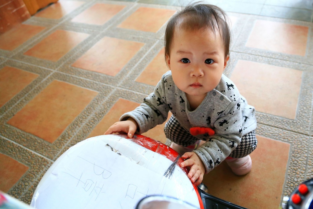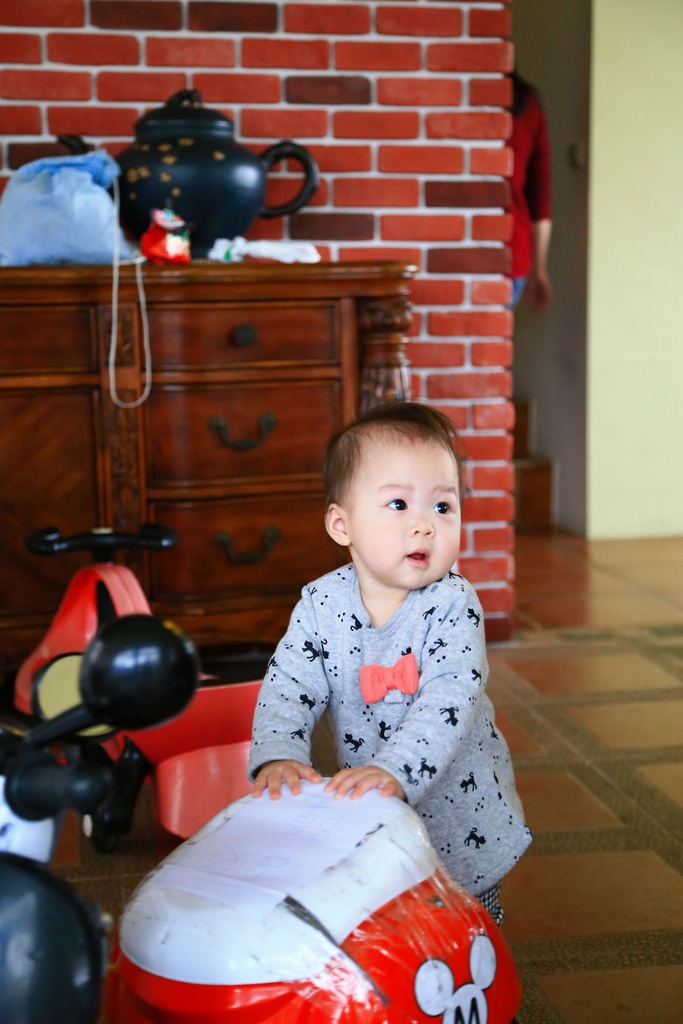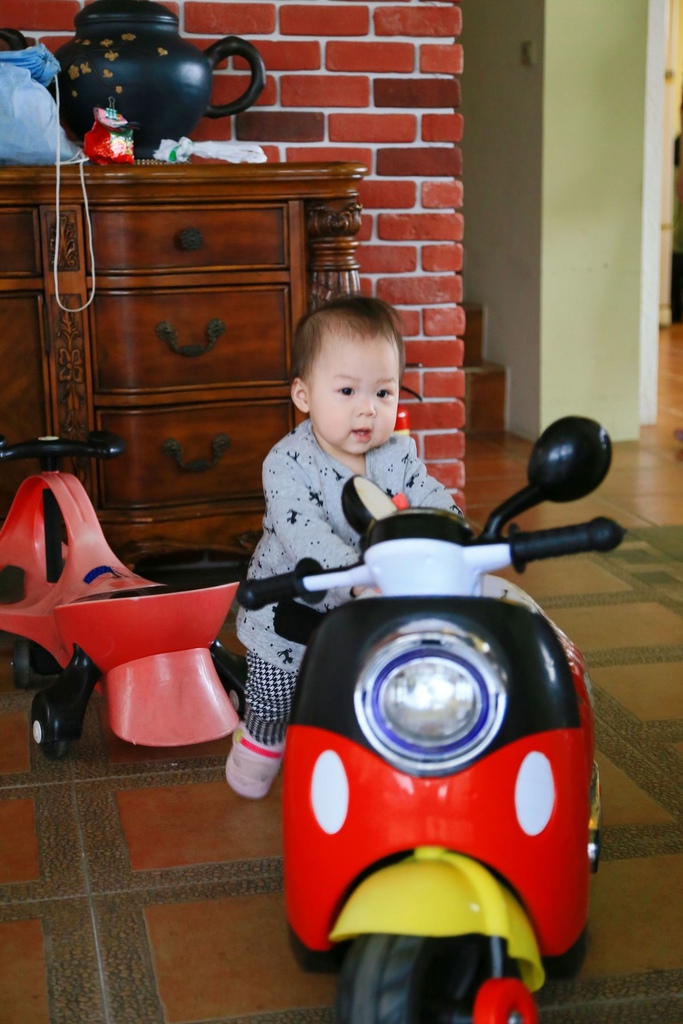 不過還不會玩電動車的小田心倒是推得挺開心的...