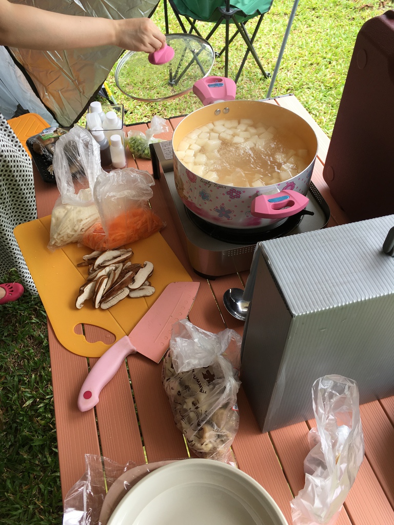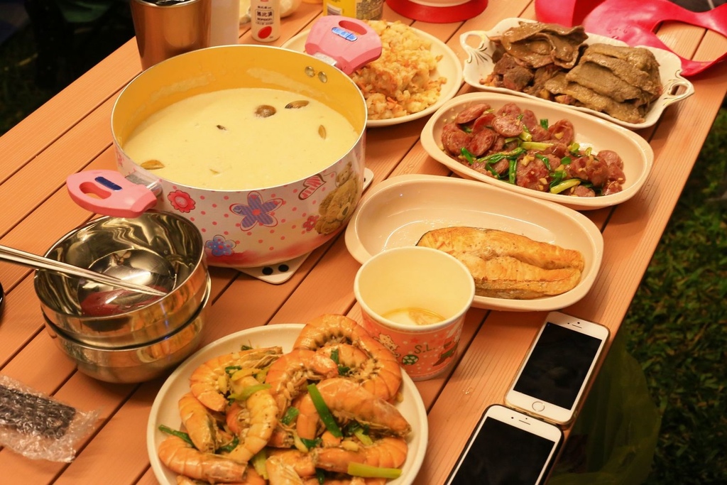 傍晚,大家分工合作地把晚餐煮好,菜色豐盛地讓人忘了是在戶外~
