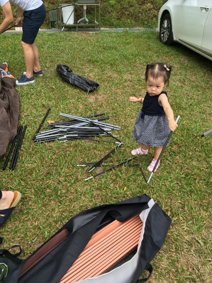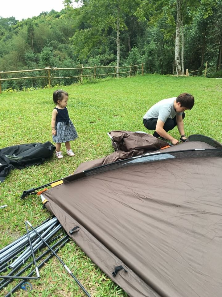 為了避免帳篷搭不起來的窘境,前一周還在家裡庭院練習了一次,請見: