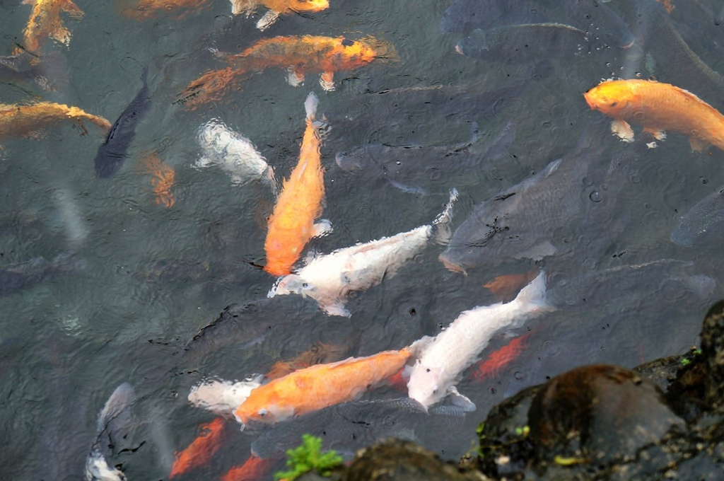 湖裡的魚被餵的肥肥的