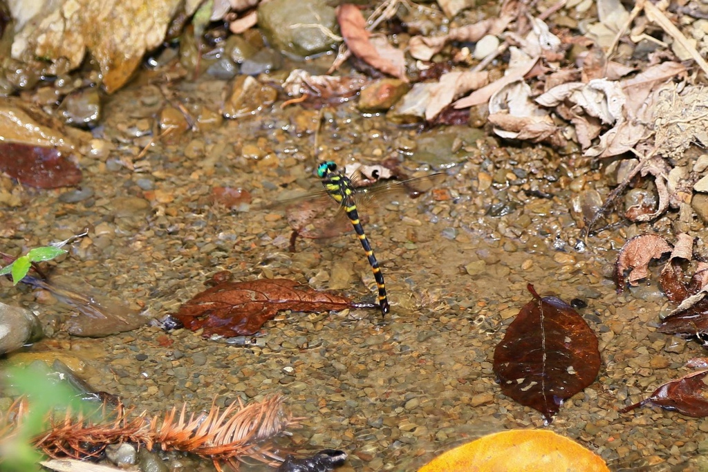 水槽後面有條小小的水流,超幸運地還遇到蜻蜓在點水~