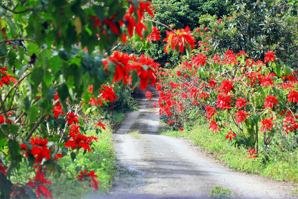 接著就會接到這條讓人驚豔的聖誕紅車道