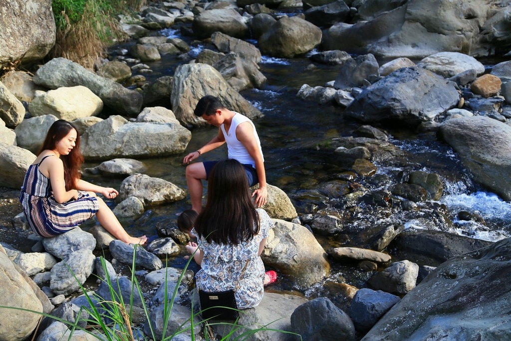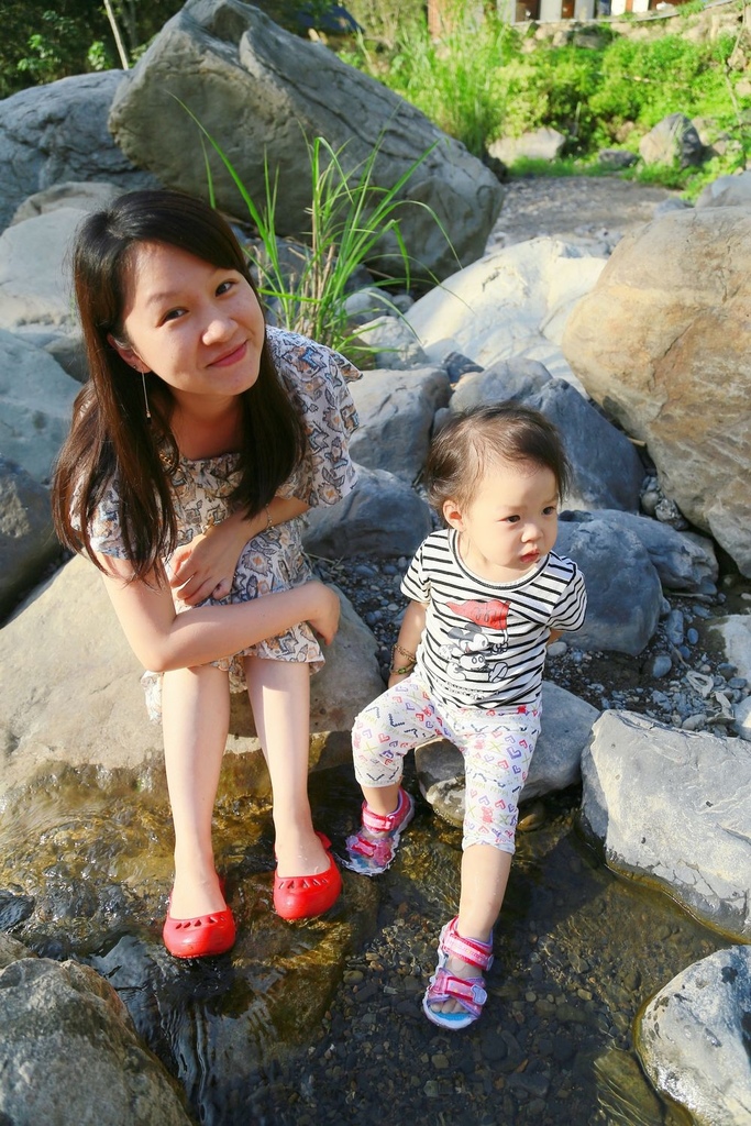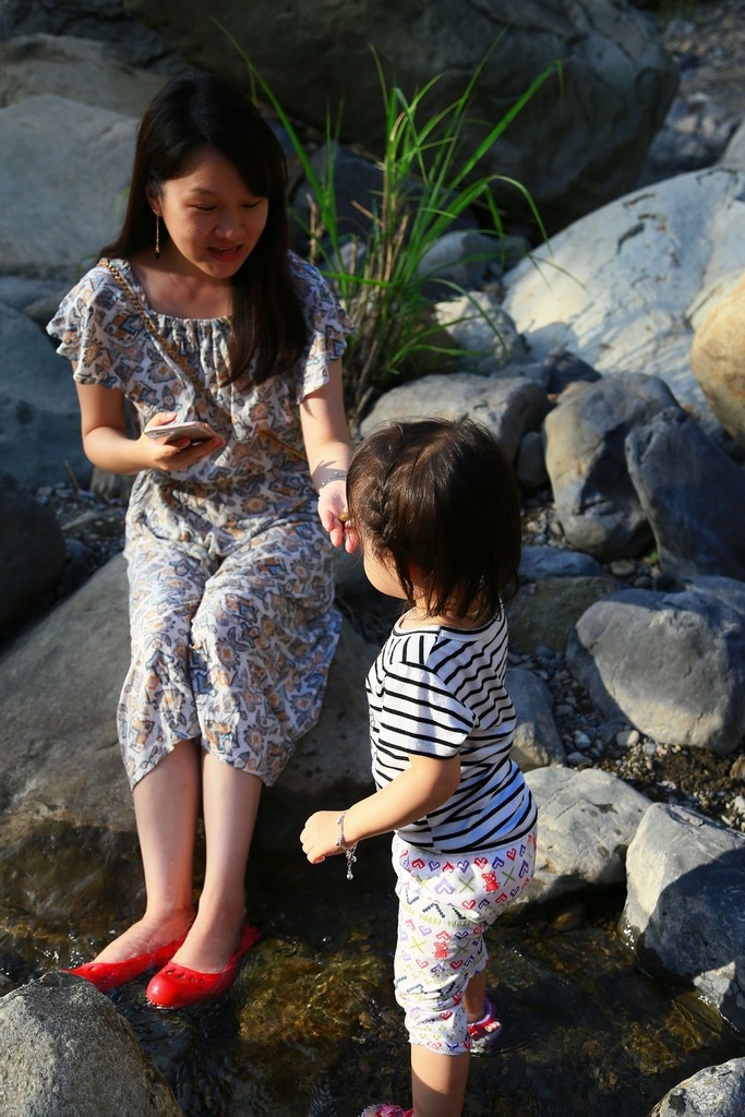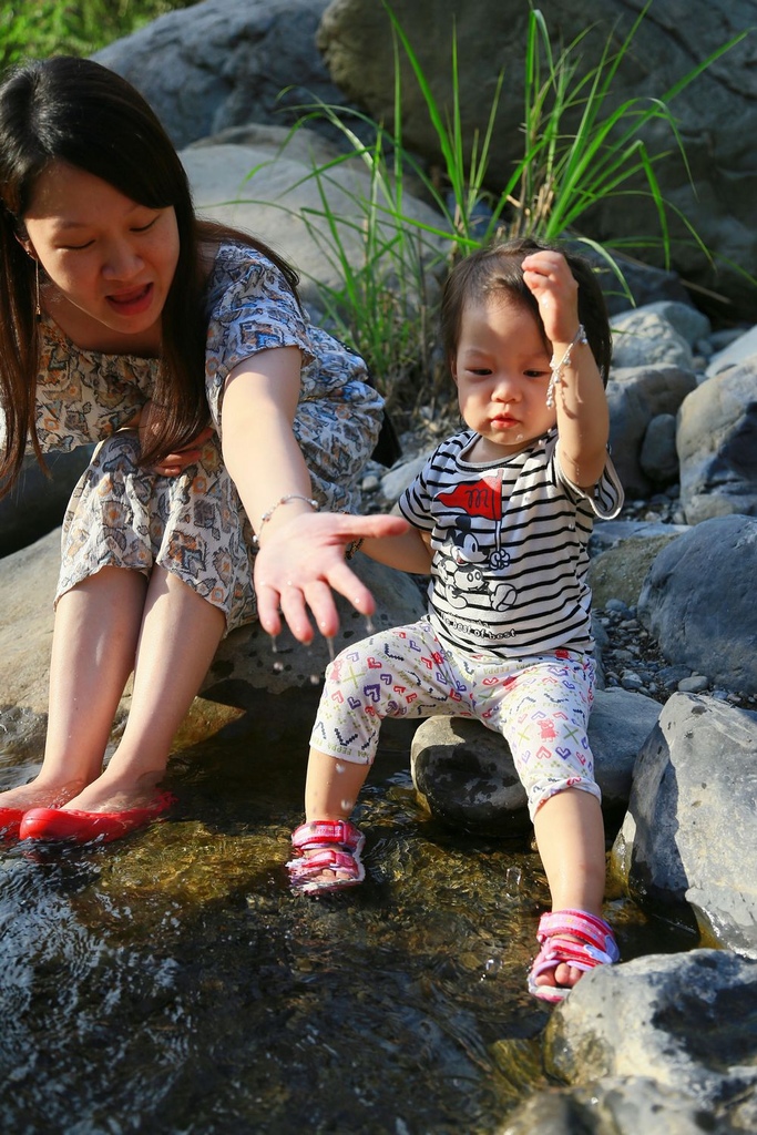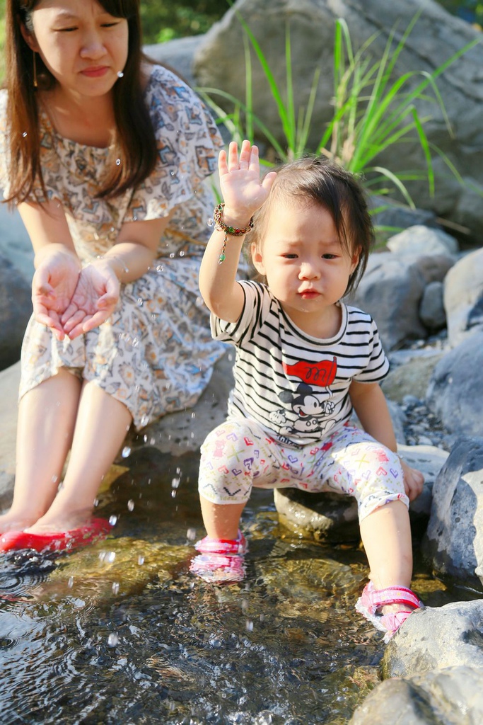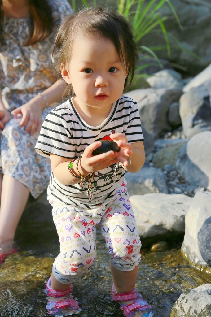 小田心原本還怕怕的,後來循循善誘才肯把腳伸進冰涼的溪水裡