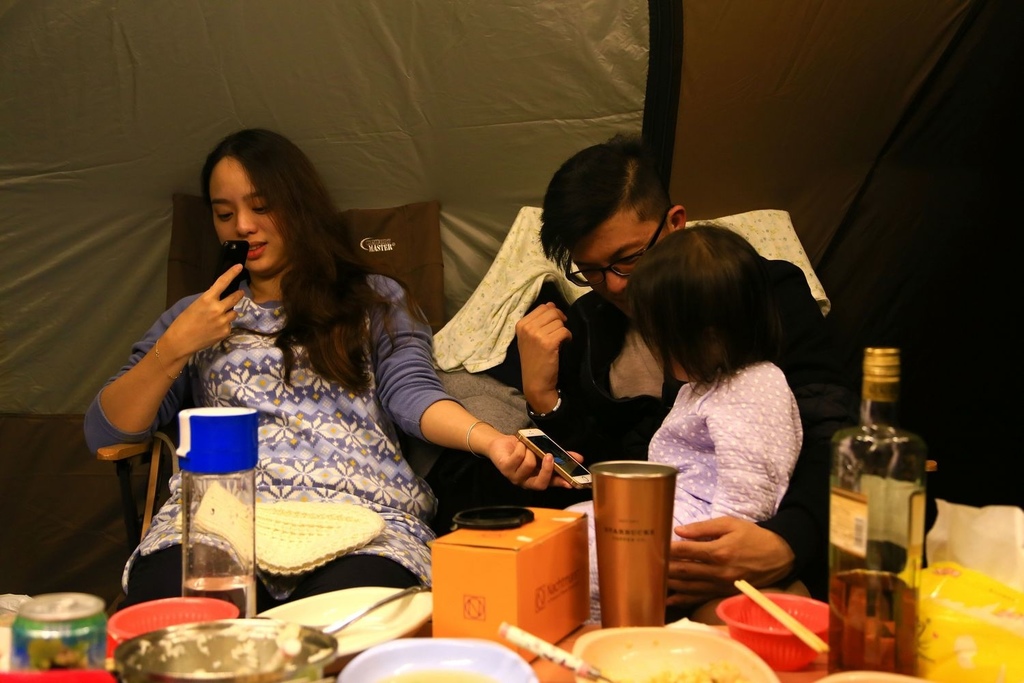 ↓夜幕開始低垂,把東西移到帳內,之前的客廳帳是320x320公分