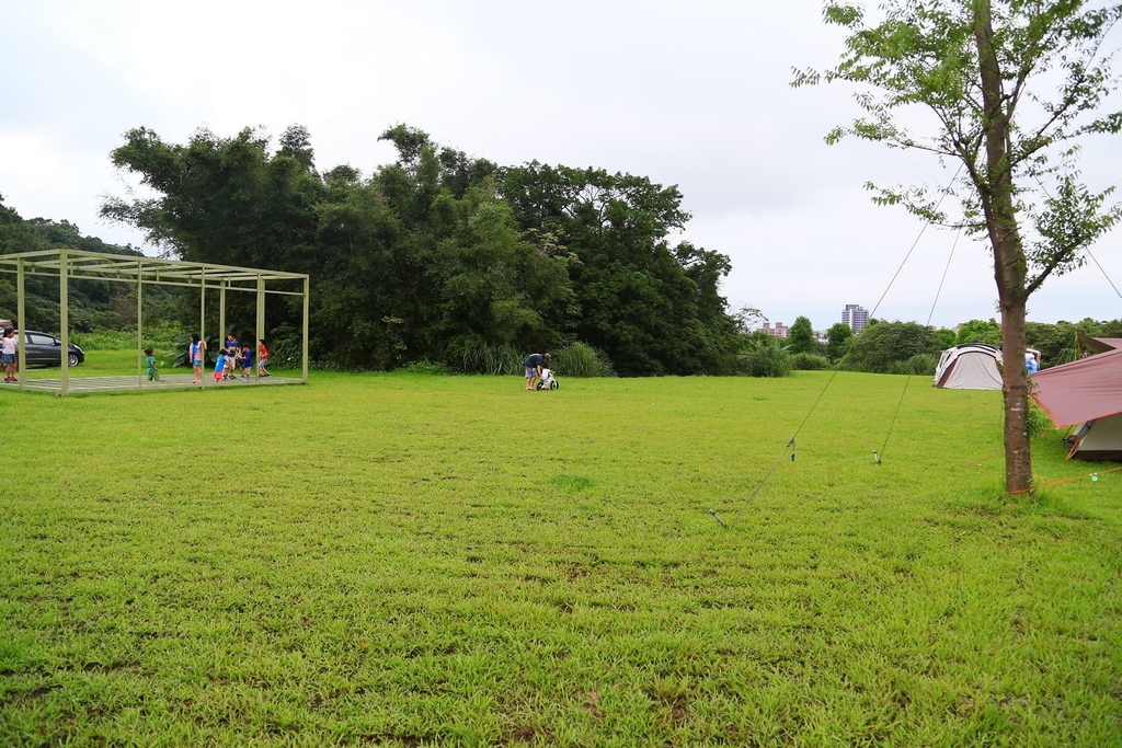 搭完帳後,後方還有一大塊草皮可以玩耍還不賴