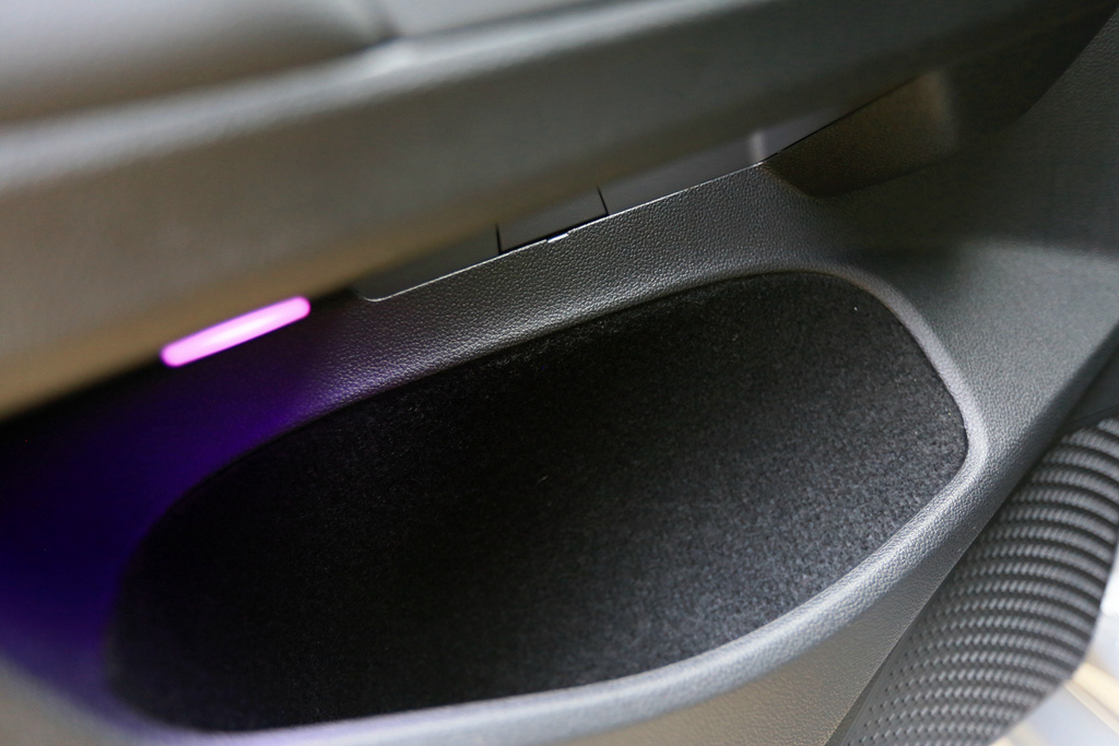 車門下的置物空間內裡也植了絨布,用心的小細節