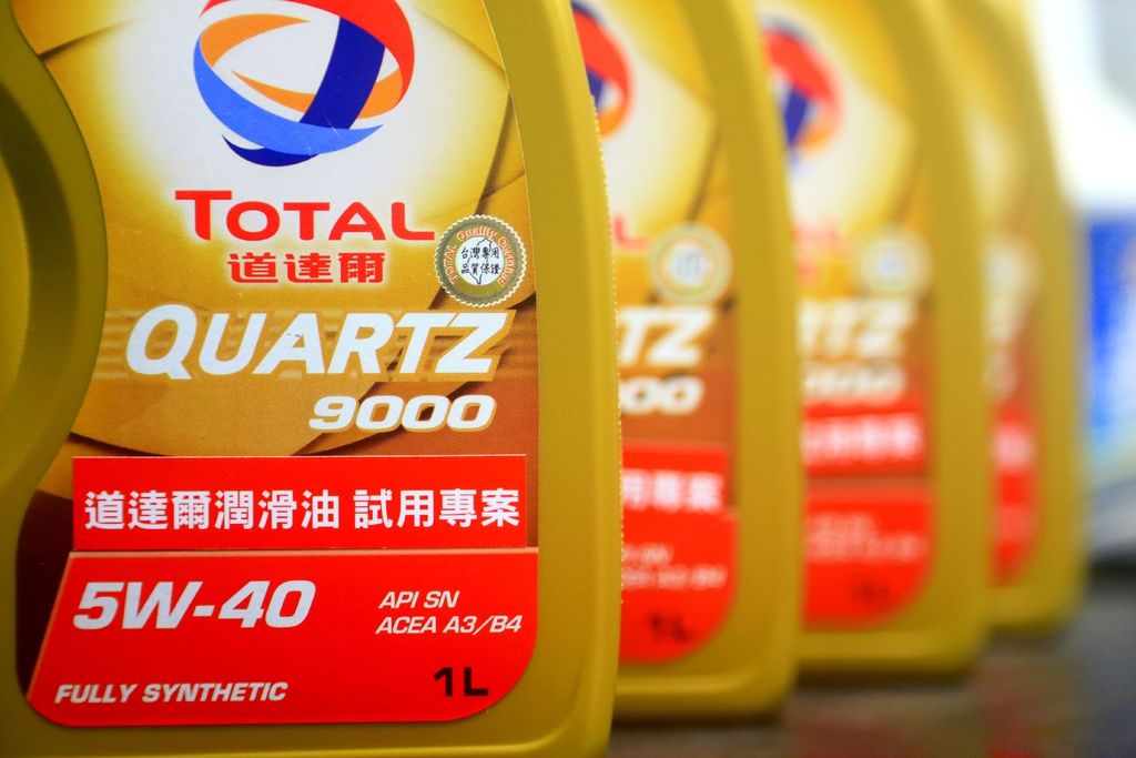 ↑請認明TOTAL道達爾旁的圓形貼紙"台灣專用 品質保證",才是正公司貨。