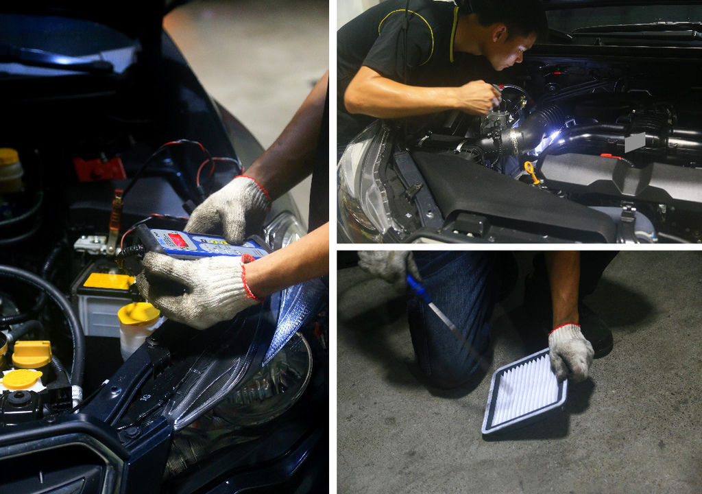 ↑更換完機油後,師傅也細心地替我的XV檢查電池電壓、清理空氣濾心等。